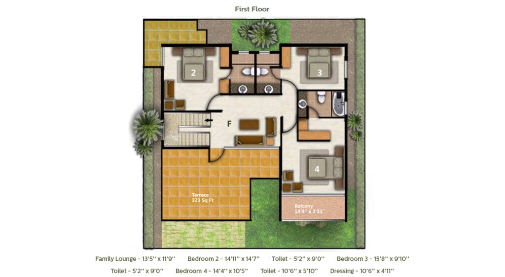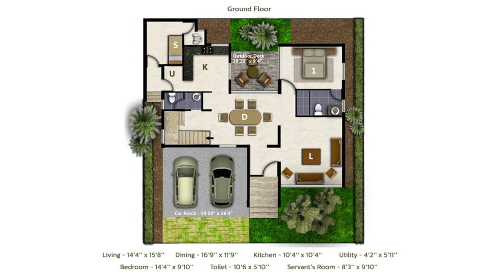 Villa Tranquila is part of Phase-1 developed on 52.732 Acres (2,13,397 sq.mt). It is a Comfortable sized 4 bedrooms, living and dining, 2 covered car parks, servant’s quarter and a separate terrace area, this independent villa in Bangalore has a lot to offer. It maximizes the space available for all your lifestyle needs.